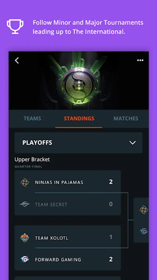 Now Dota fans can keep up with all the latest events in the Dota Pro Circuit with details on matches, players, teams, and tournament results!