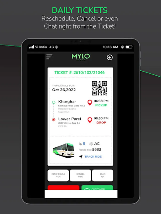 Manage your trips, book passes, track fleet and even get instant notifications all from the MYLO Mobile App. Commuting for work never got more easier!
