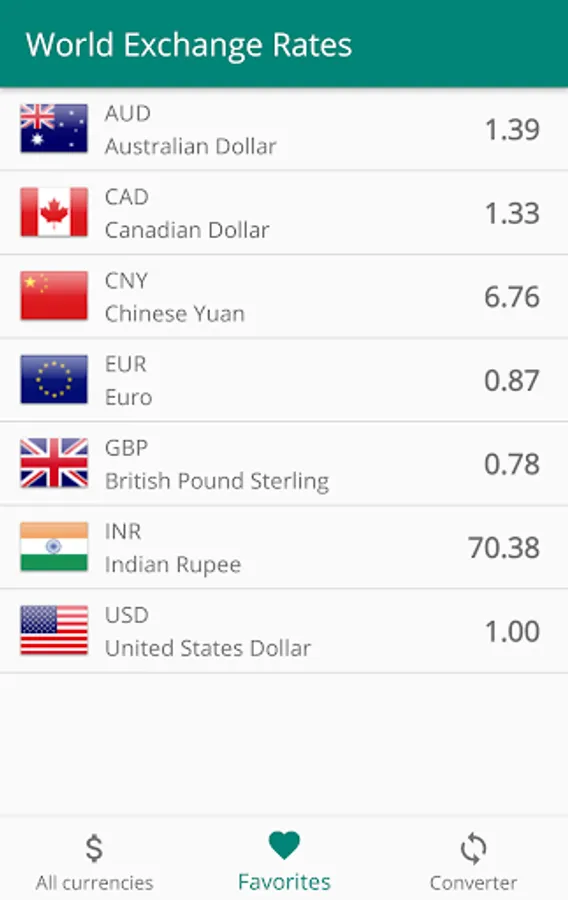 • Set any currency as favorite (long press the currency item in all currencies tab)