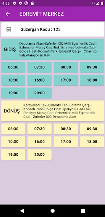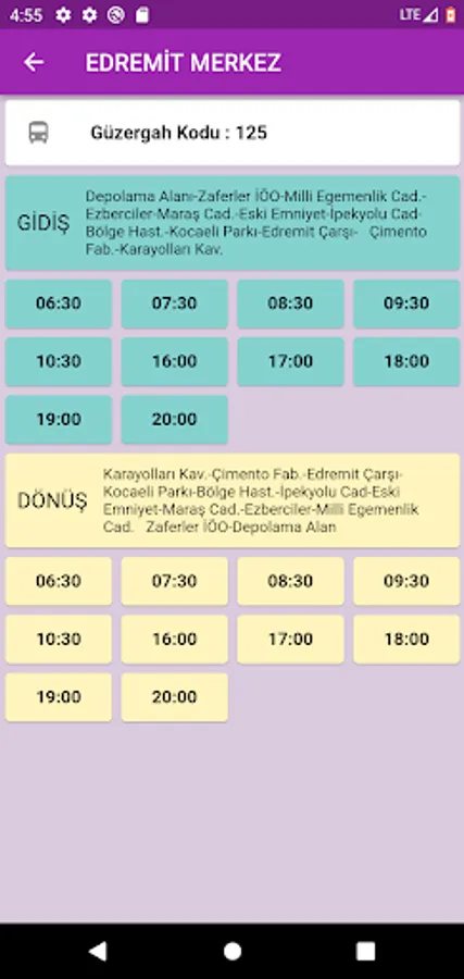 Van'da belediye otobüslerinin hareket saatlerine erişmek için sürekli belediye sayfasına gidip kendi güzergahınızı hepsinin içinde bulmaya gerek kalmadan belediye otobüslerinin hareket saatlerini bu uygulama sayesinde rahatlıkla bakabilirsiniz.