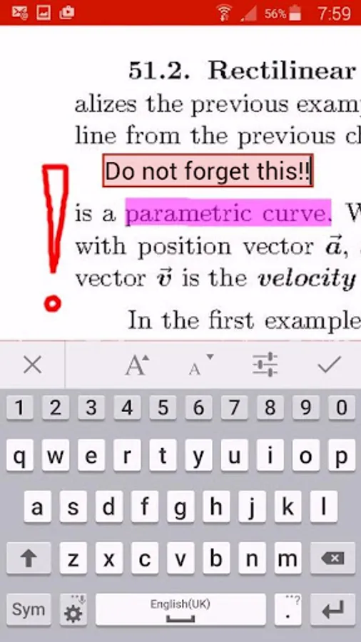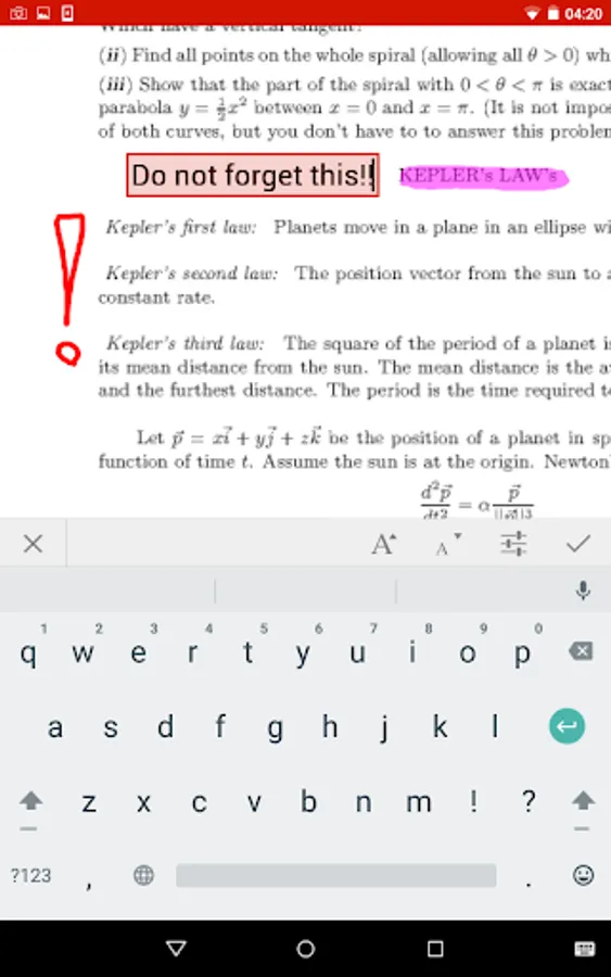 Tap the tool of your choice and underline, highlight, circle, erase or type over the chosen parts of your lecture notes. After you are done adding your annotations you simply save your work and your annotated lecture notes are safely stored in the app and ready to be shared as a PDF file (or JPG pictures if you prefer).