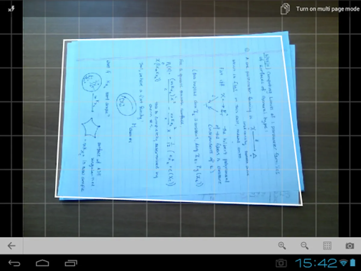 To start scanning choose the camera input option, place the paper notes on a flat surface such as a desktop in the lecture room, point your device’s camera at it and the app will automatically recognize the edges. After snapping a photo of the document you can enhance it using different presets and/or manual sliders. If you are not satisfied with the auto crop, you can also adjust the crop manually.