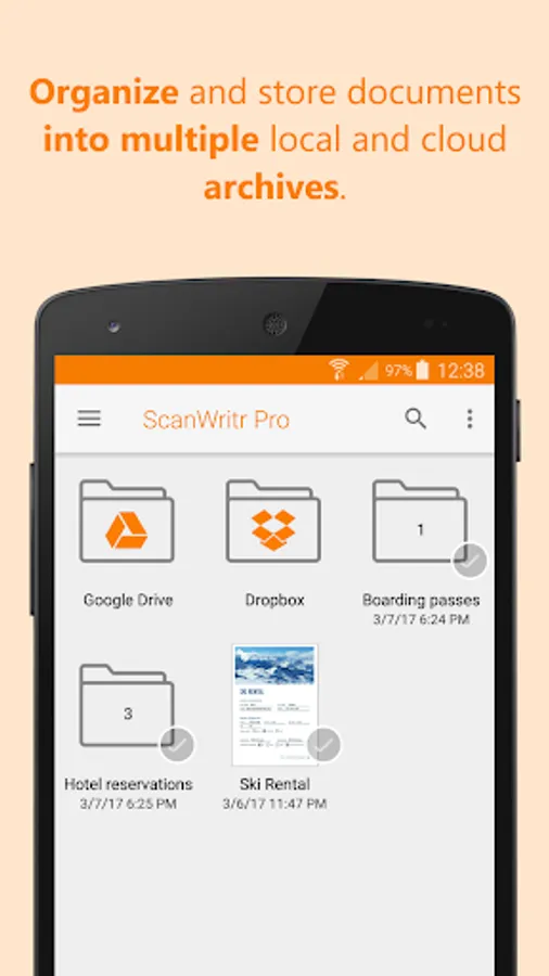 ScanWritr is perfect for business, educational and home use. It turns your Android device with a camera into a all-in-one scanner, document editor and arhiving tool, suitable for scanning, organizing, editing, printing, faxing, emailing, syncing with cloud, sharing and exporting of various documents like contracts, articles, business cards, notes, receipts, warranty papers etc. Image capture is done with the help of Real-Time Edge Detection (auto crop).