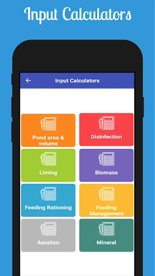 CIBA Shrimpapp contains various calculators pertaining to shrimp farming to estimate: the pond area and volume, total biomass in the pond, disinfection requirements, feed rationing, feed management, mineral requirement, soil pH adjustment and aeration requirement.