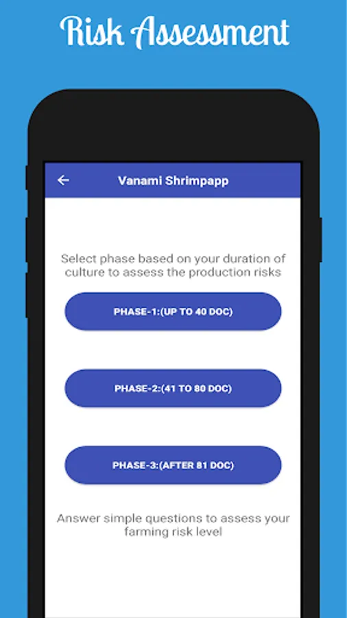 This app has a farm risk assessment module which helps the user to evaluate the production risk status of his farm by answering a sequence of multiple choice questions. At the end of the module this tool will assess the potential risk level and recommend suitable management measures to manage those risk factors.
