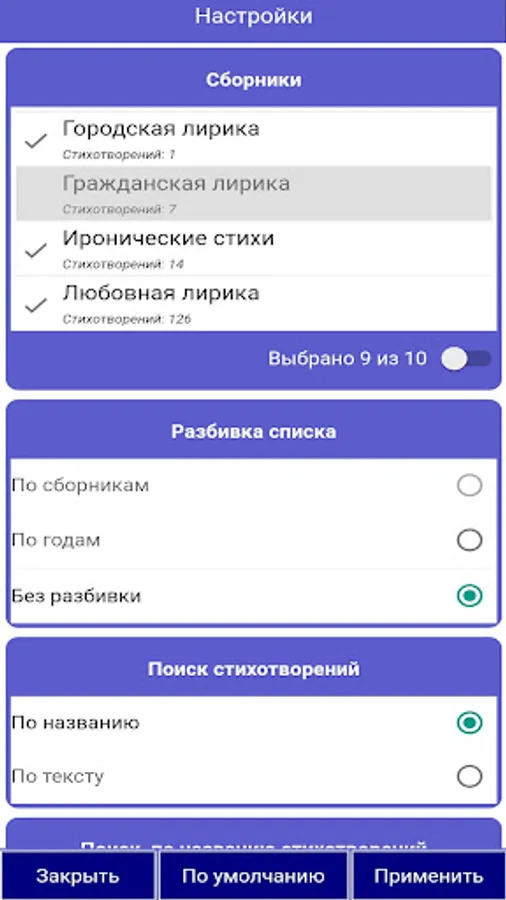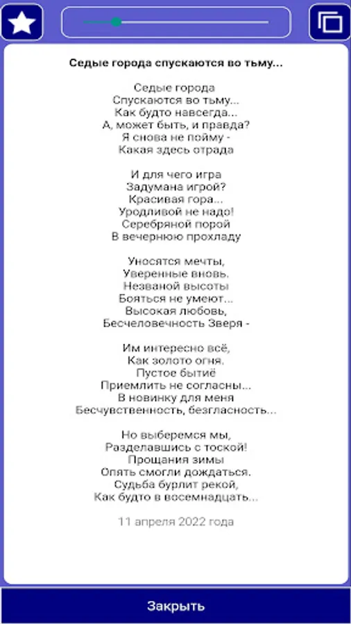 There are not many poems yet, but we plan to constantly replenish our application with new poems.