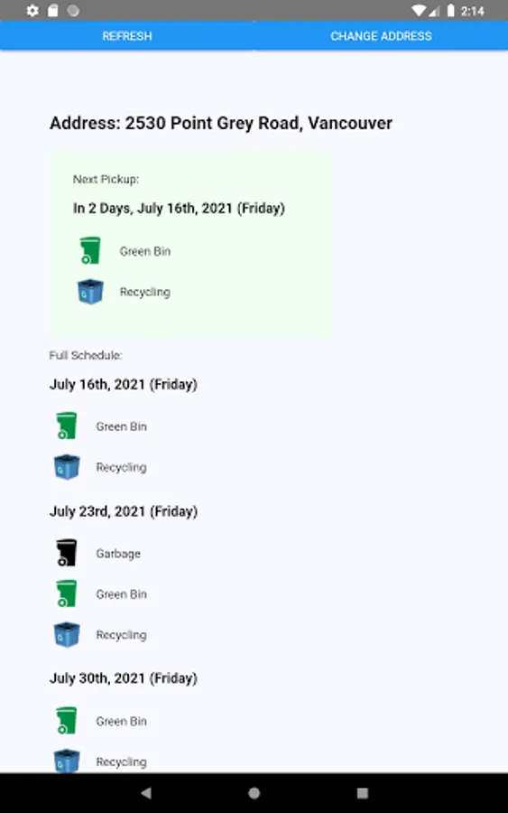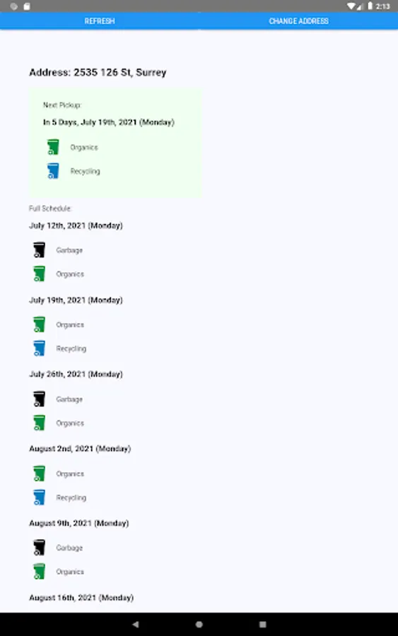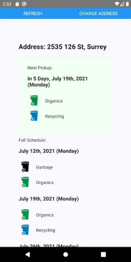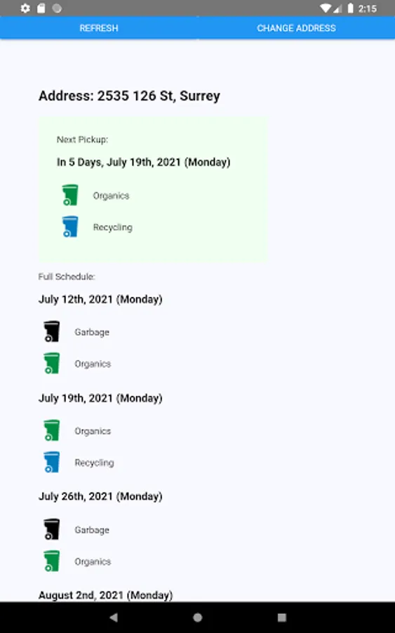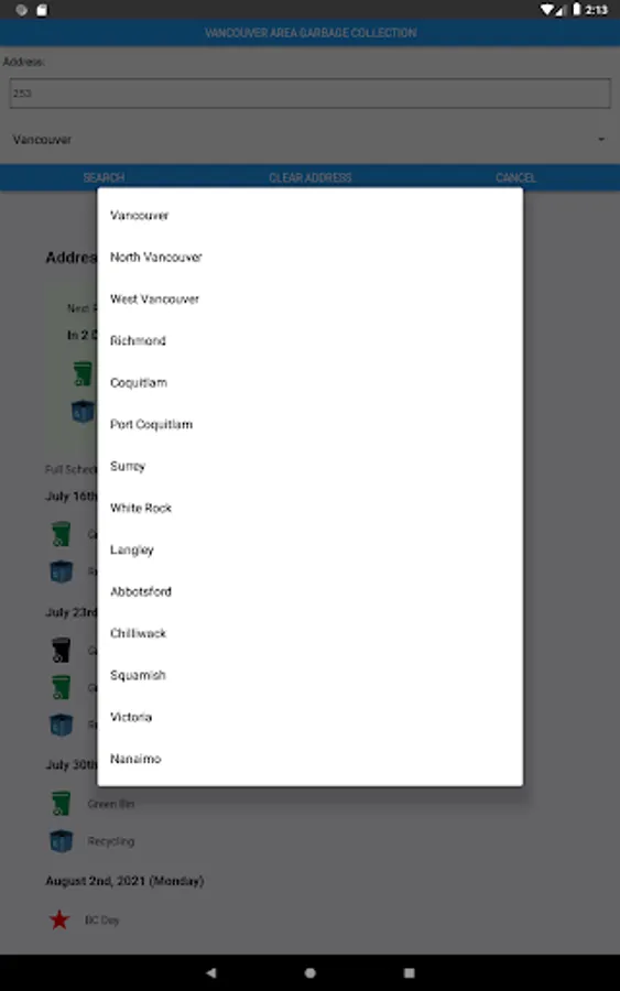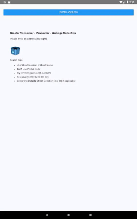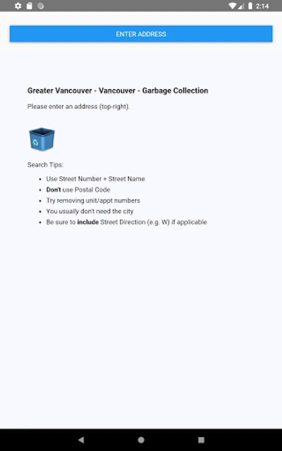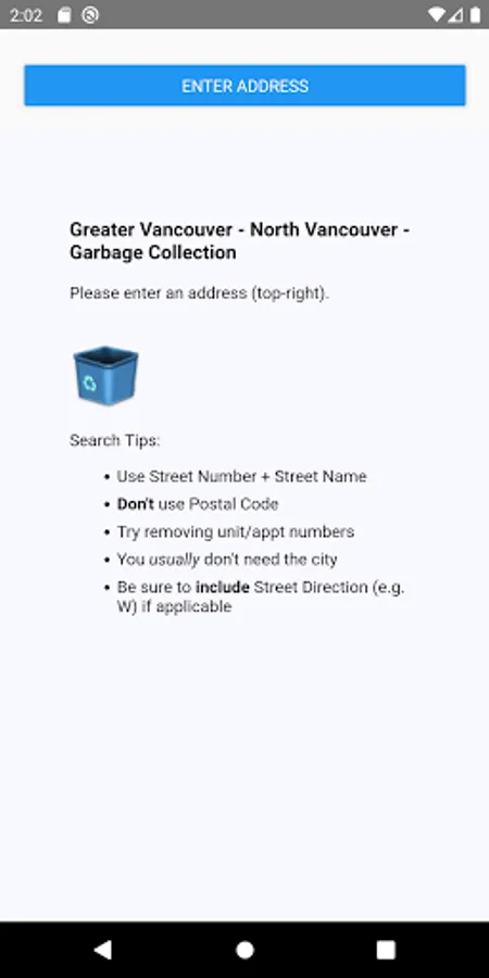 Note that we recieve the address you search in order to look up the garbage schedule.