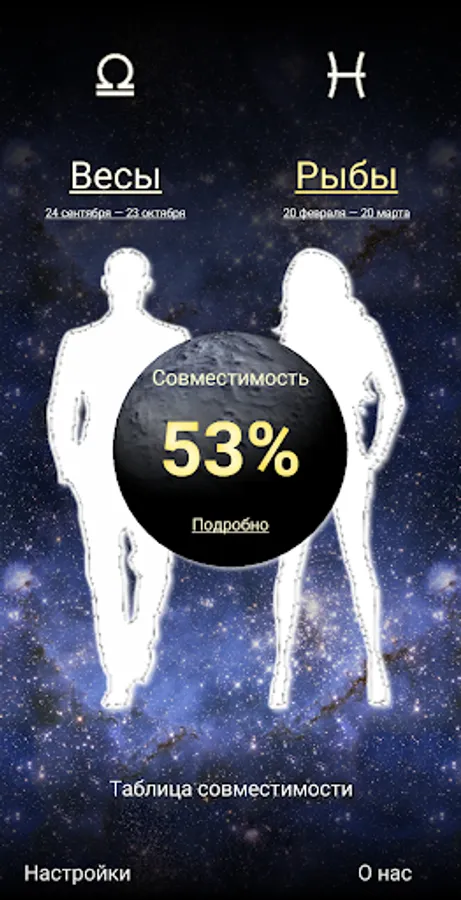 Our application "Compatibility Horoscope" will help you find out the strong and weak ties in your union, find the best options and points of contact.