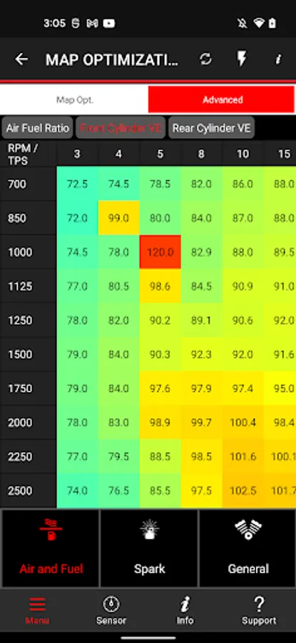 - Adjust individual parameters in your fuel and spark tables