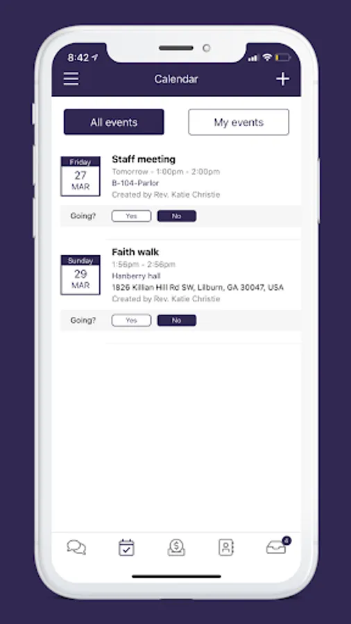 - Church leaders can send church news through push notifications to all members, or send notifications to small groups, like Bible study groups or event registrants.