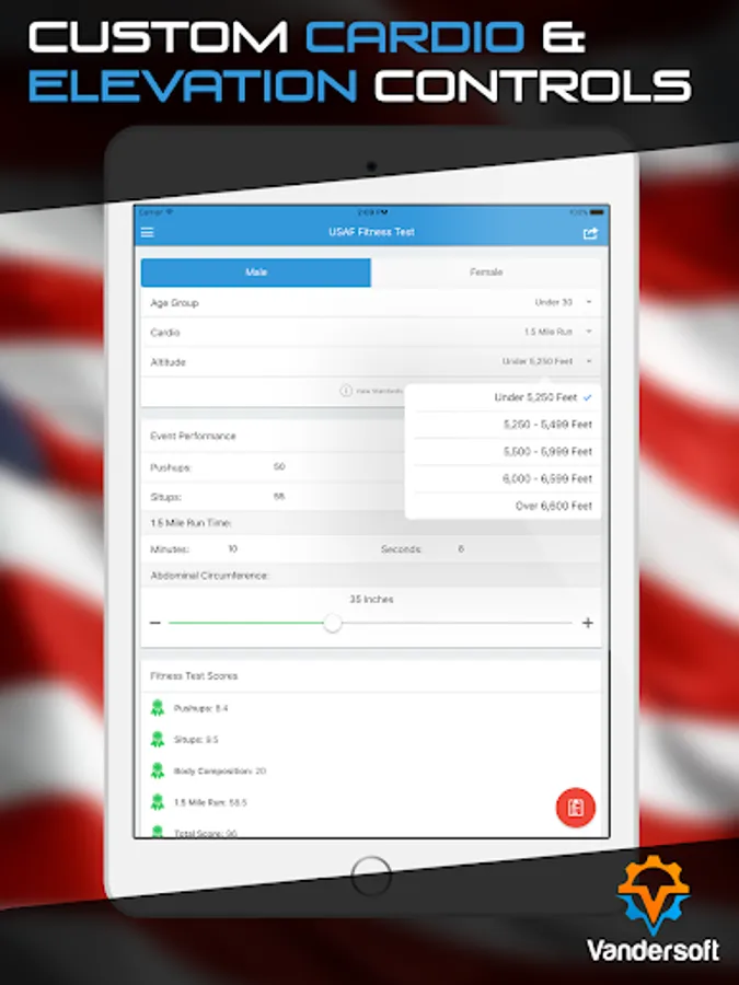 The Air Force PT Test App has full support for alternative cardio events, elevation, and exceptions. Not doing the run? Quickly see what you have to do to pass the alternate cardio events. Full support for logging your PT/BCA scores to visualize your progress with graphs.