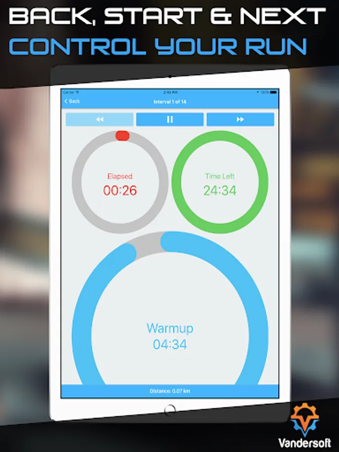 Need to stop and tie your shoe? Pause 5K Run! Or, press Back/Next to go to different intervals.