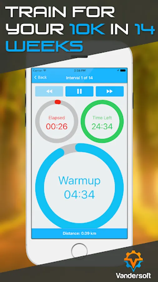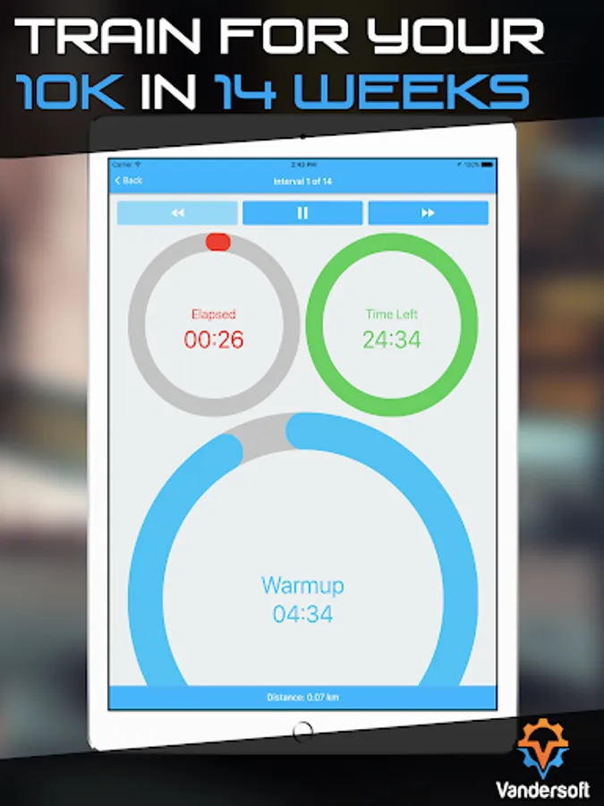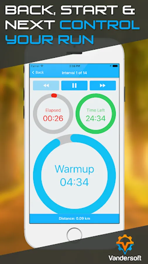 Need to stop and tie your shoe? Pause the run! Or, press Back/Next to go to different intervals.