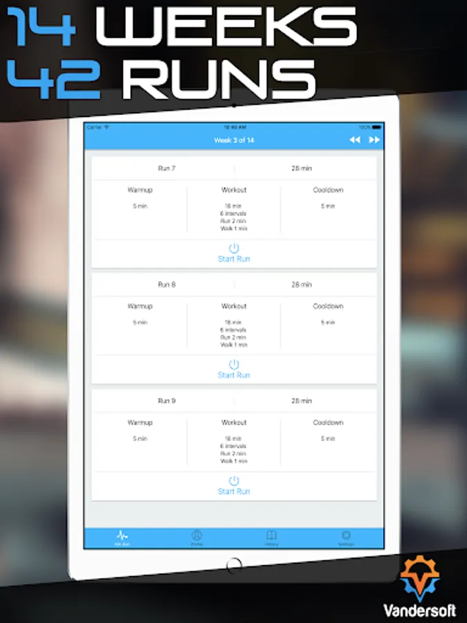 Take your device with you on your runs! Listen to your favorite music and get prompted over your headphones to run or walk. Your entire run will be directed through your headphones or speakers.