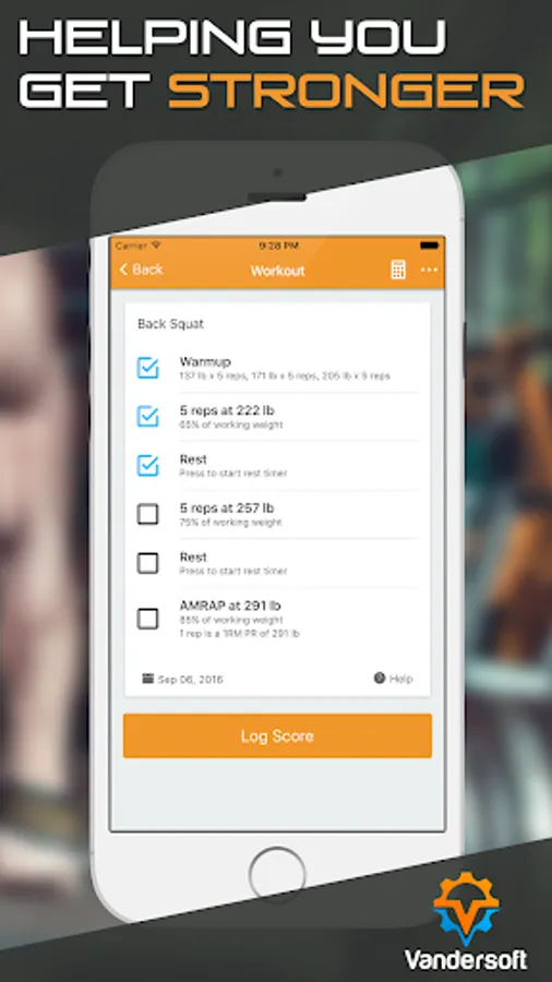 ✔ Keep track of your scores. Your AMRAP (As Many Reps as Possible) score from your last cycle is displayed as you complete each lift
