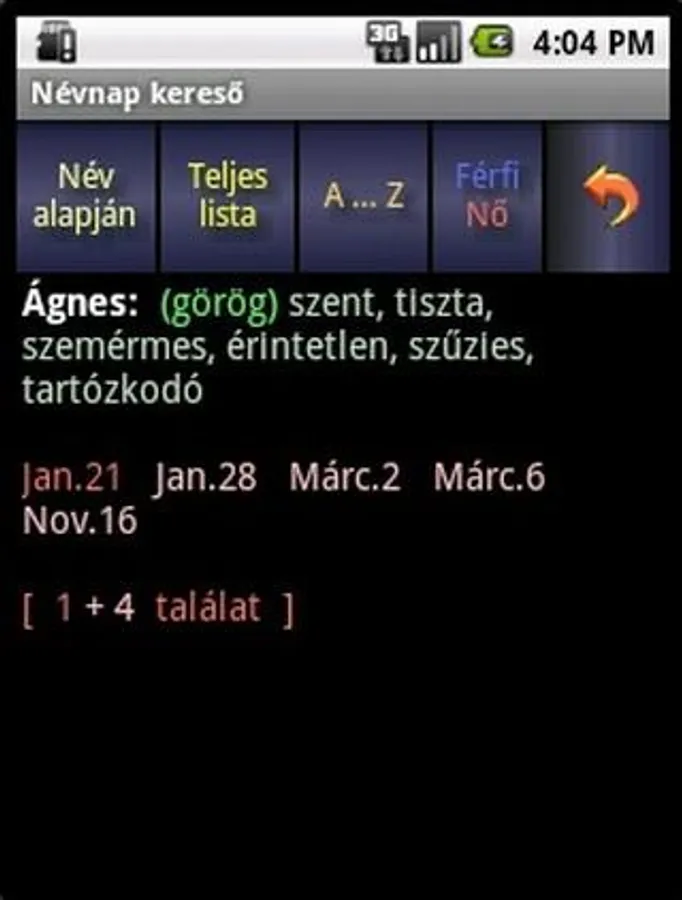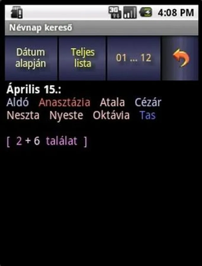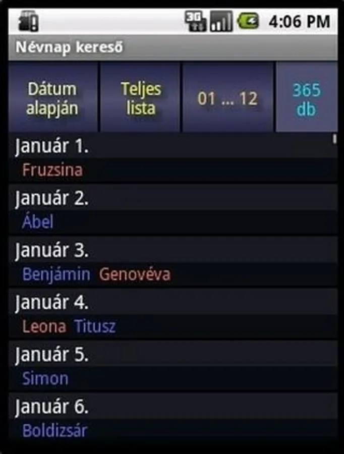 Common name day search application: (1) name based on name days, or to find a (2) day name names.
