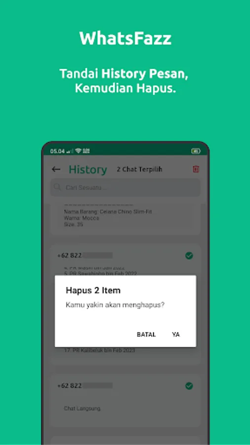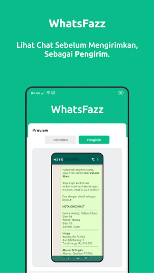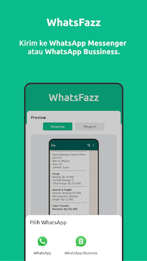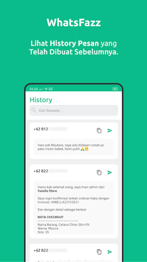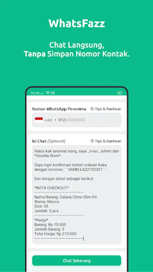 WhatsFazz is an application to help you send WhatsApp (WA) chats without the need to save a contact number first.