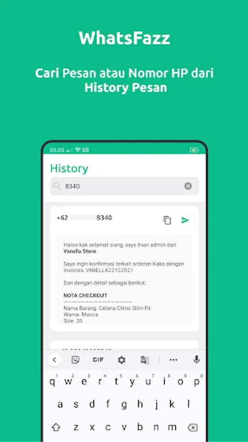 From WhatsFazz, you can enter the recipient's number & also the contents of the chat, then you will be directed to WhatsApp (WA), without the need to save the recipient's contact number first to start a conversation.