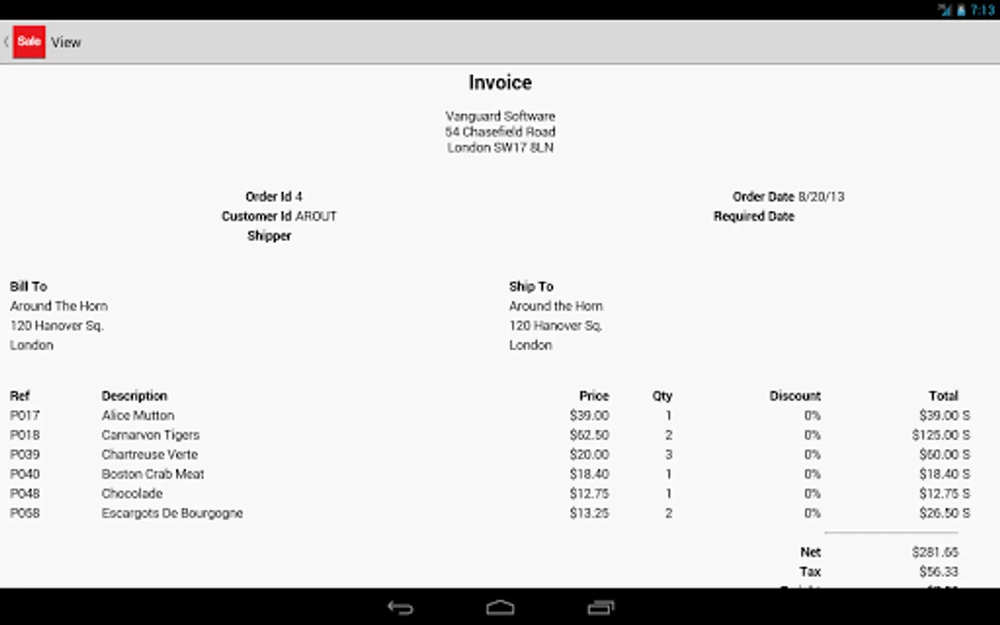The Sales Manager is designed to run on just about any Android device, and can be used even on devices with small screens. It has a rich graphical user interface, which makes it easy to learn and to use. The application uses a highly scalable SQLite database, and all queries are indexed. It can handle large numbers of customers and products, with little or no loss of performance.