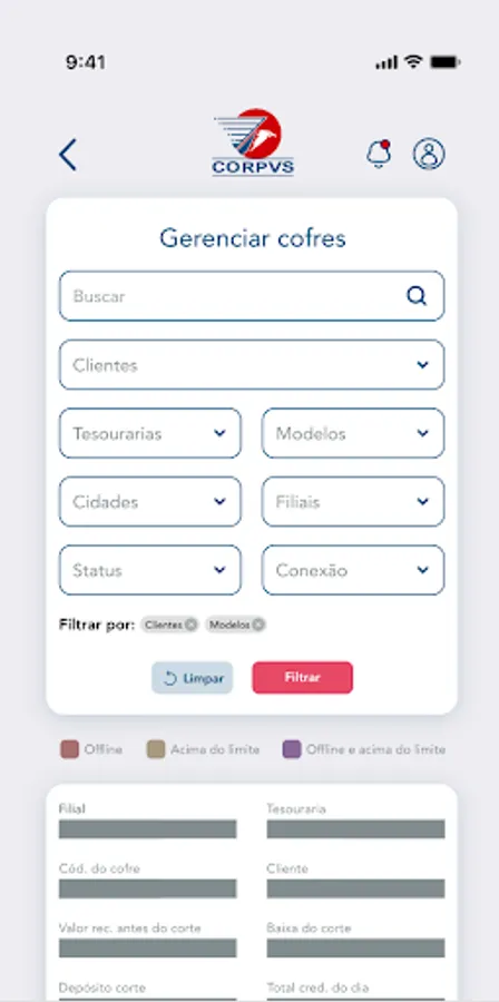 O cofre inteligente da Corpvs (Corpvs Cash) é ideal para lojas e comércio em geral que trabalham com o manuseio de valores em espécie. O cliente realiza a venda e em seguida deposita o valor recebido no cofre inteligente mediante a utilização de uma senha de acesso ao sistema, recebendo um comprovante a cada operação realizada. Este serviço evita a exposição de cédula por tempo desnecessário e proporciona um maior controle das transações e uma maior segurança dos valores mantidos no estabelecimento.