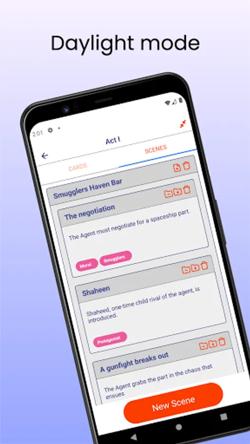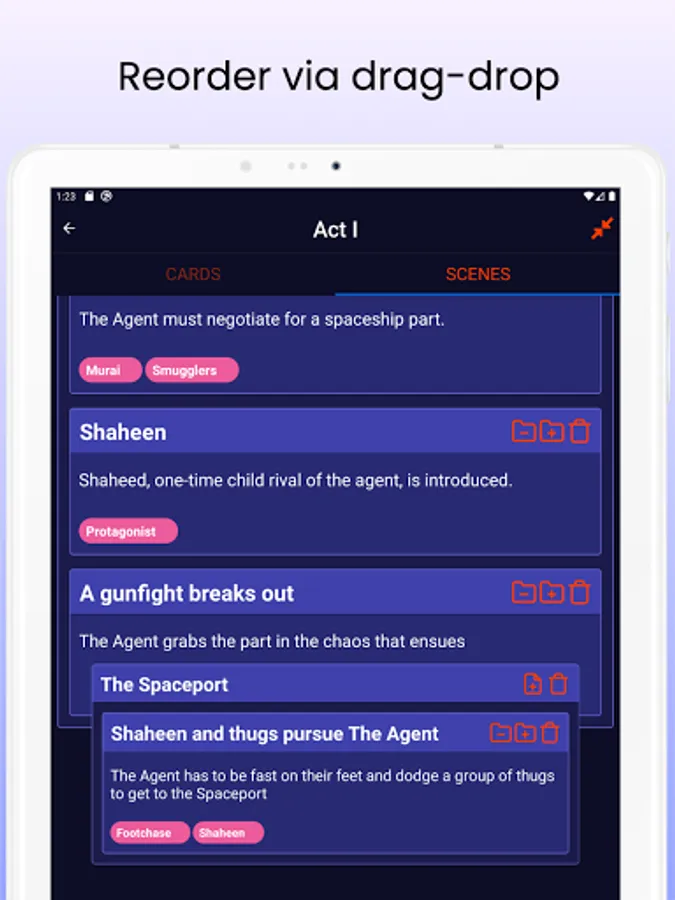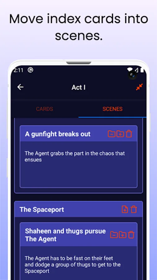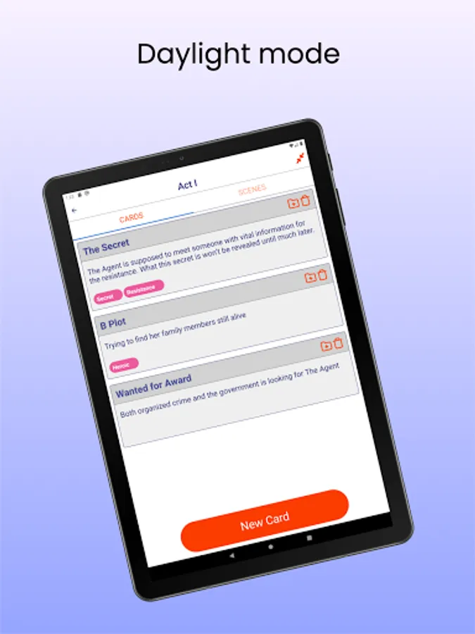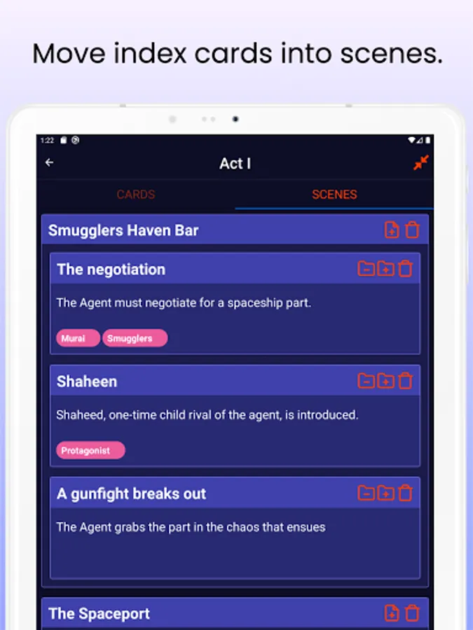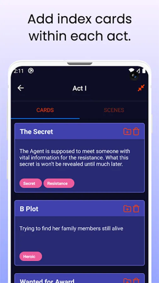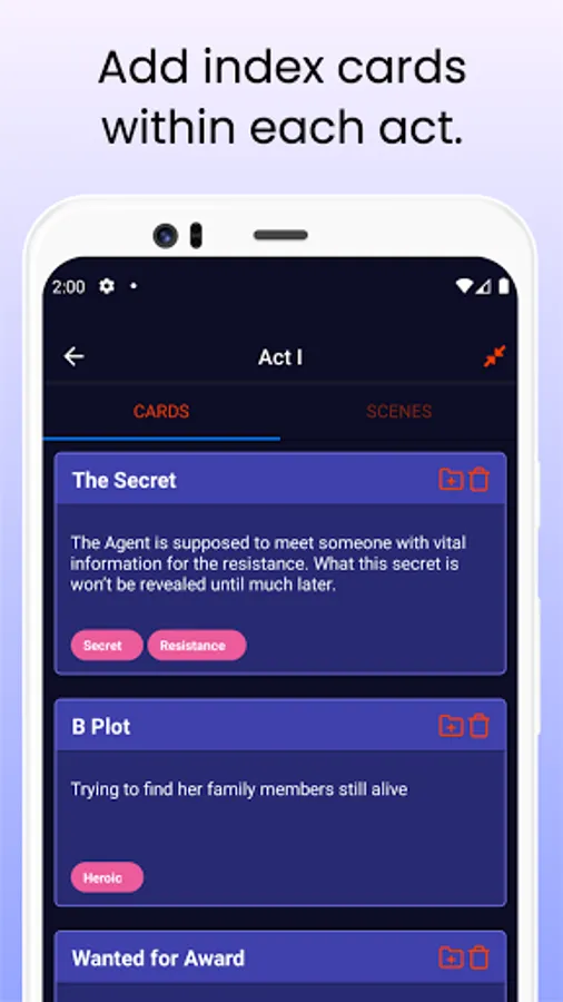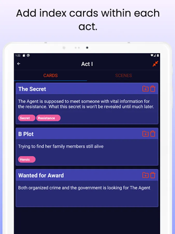 If you are a writer of a script, story, sketch, or even a novel, you likely want to use index cards to do things like plan the plot, scenes and flesh out characters. The problem with index cards is you can't always have them with you to quickly add or refine an idea.