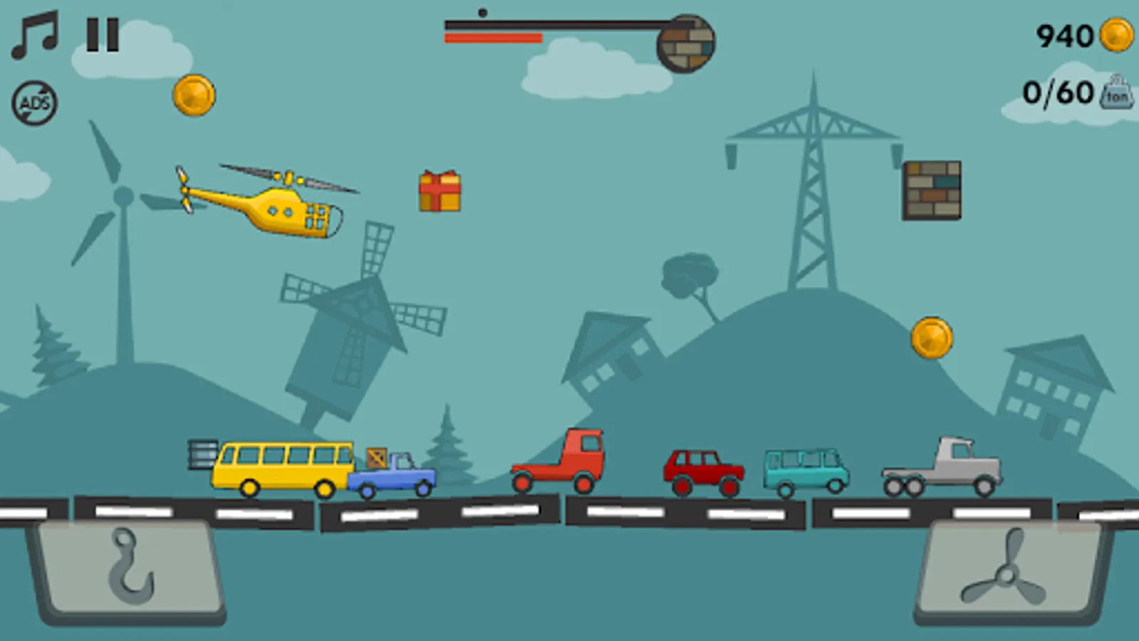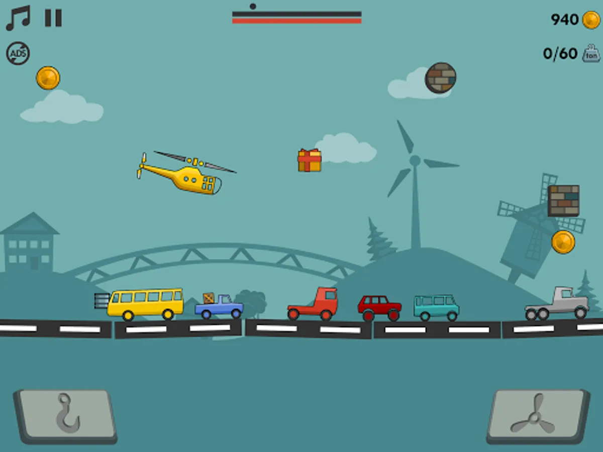 - use only two screen buttons to control helicopter and chain.