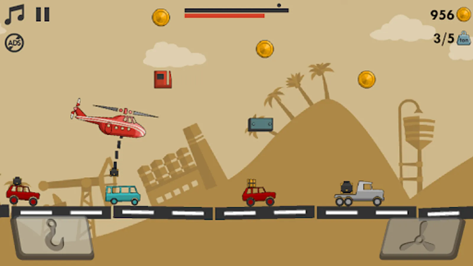 Heli Runner 2 it's a cross platform game which was developed in classic casual arcade genre. Use only two fingers to control helicopter and chain for picking up cargoes. Try to collect as much as possible cargoes and complete all tasks. Catch coins and avoid obstacles in the sky. Also, you will find many surprises and bonuses. The flight is happening in front of the countryside background decorated by realistic physics. Finally, now it's the best time to try it!