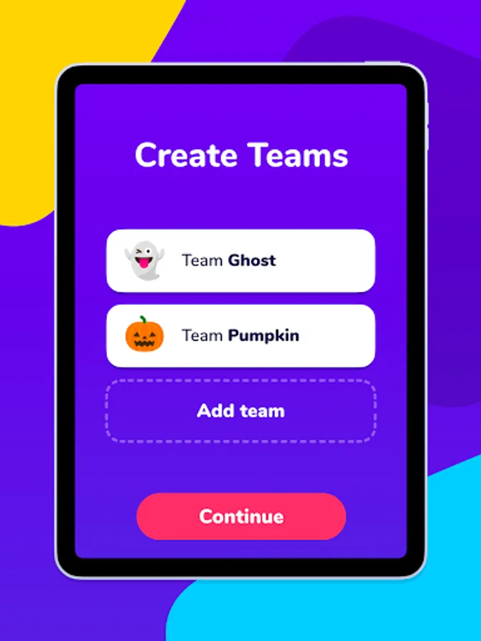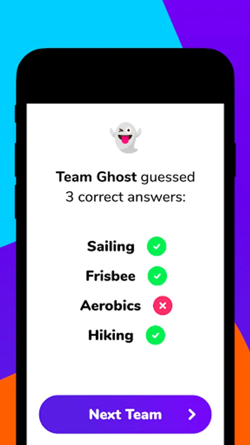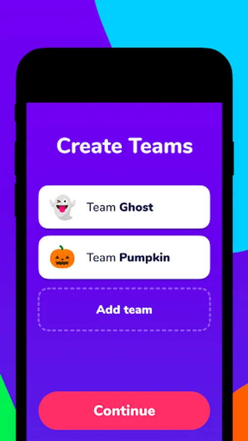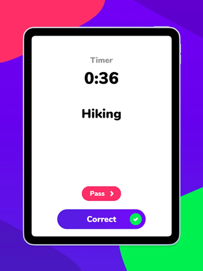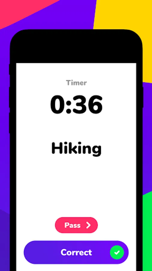In the beginning, create as many teams as you wish and decide on who's in which. Then decide on a charades topic, set the in-app timer, and hit Play! The app then tells you which team's turn it is. This team decides on a player to act out the charades word, who cannot talk during their performance. The rest of the team is guessing the word. The player who acts is allowed to skip to the next charade's word if his team can't guess the correct word after five seconds. After the timer hits 0:00, the team gets one point for every correct answer and hands the phone to the next team. The winner is the team with the most points!