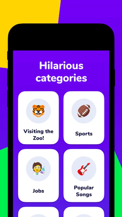 Kabuki offers a lot of different charades categories to choose from in the app. Whether you like animals, parties, music, or movies – there's something for everyone! Kabuki even features a section just for kids, so even the youngest can participate in this great party game!