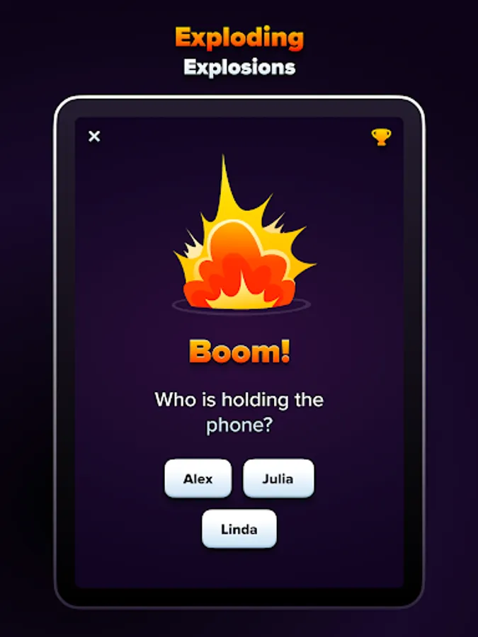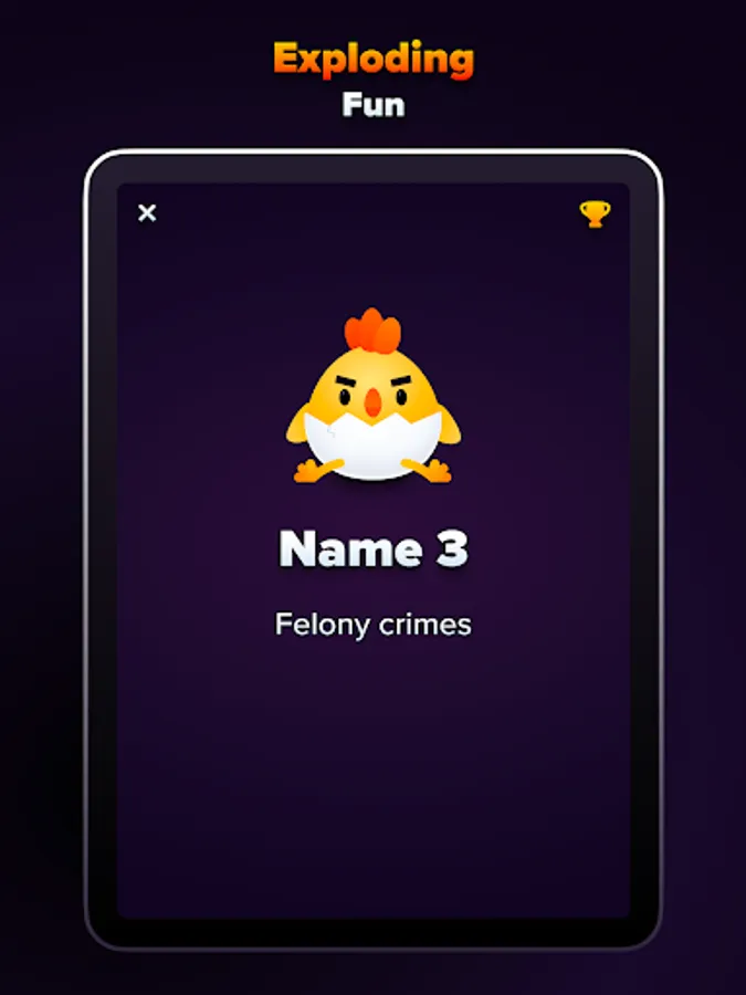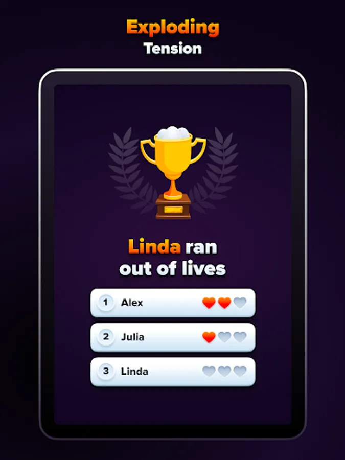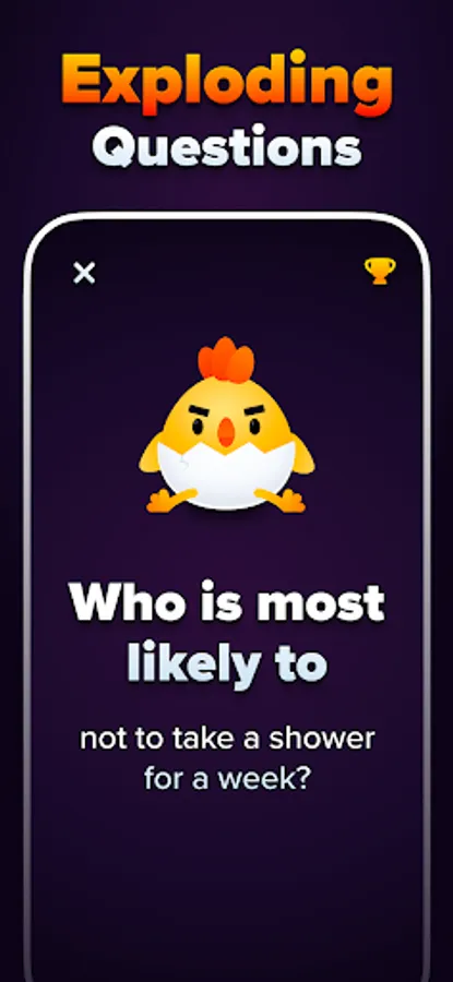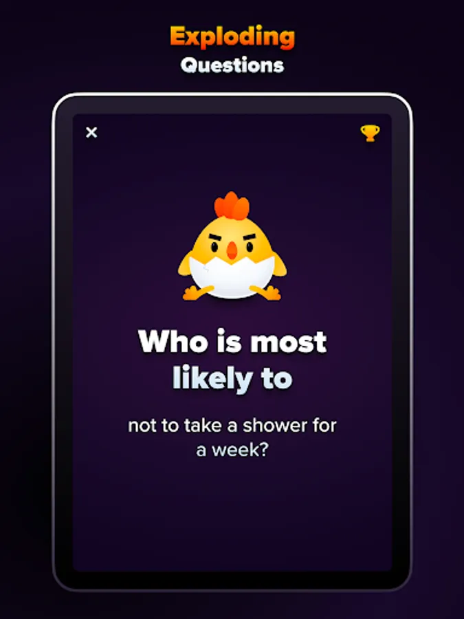 Players must quickly solve different word-based challenges and hand over the phone to another player before the chicken explodes. You lose a life if you hold the phone while the chicken blows up! It's a fun and easy game for groups.