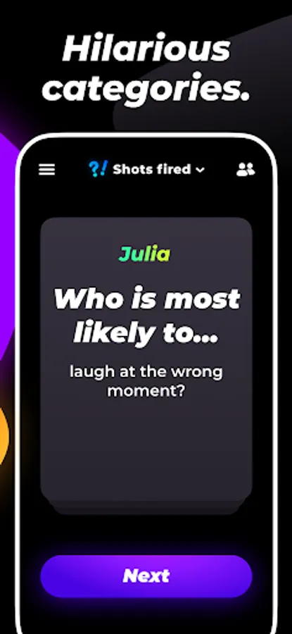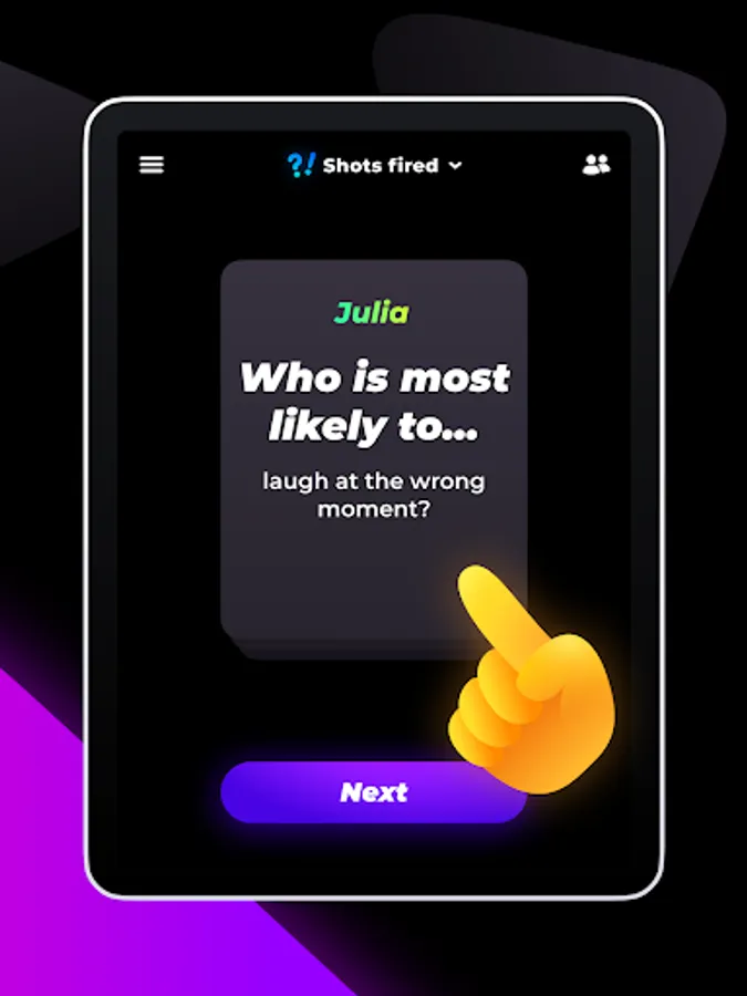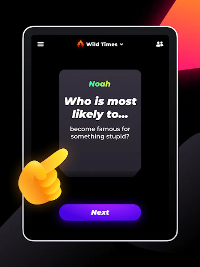 Most Likely To is a wild party game for adults. Find out what your friends think about you and who they think is most likely to do absurd things. It’s a crazy party game for house parties, pre-parties, frat-parties, and all other gatherings.