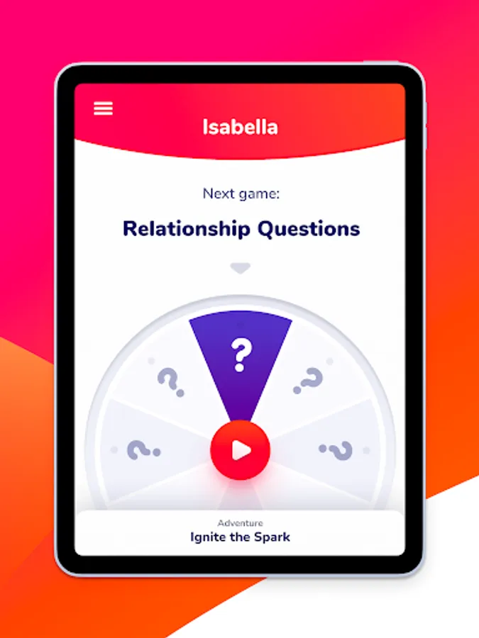 For example, a goal can be to get to know each other better or to try new exciting things together! All you have to do is to spin the wheel and improve your relationship with meaningful conversations, fun questions, and romantic moments for two.