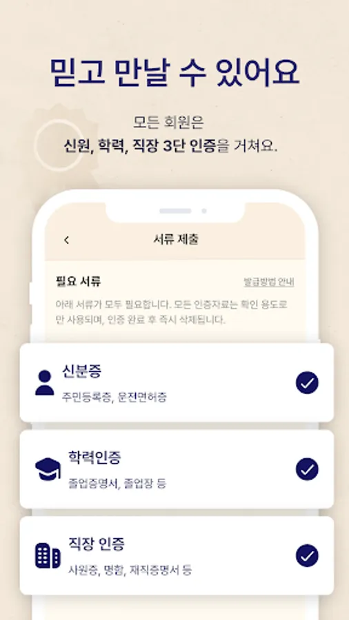 Both men and women authenticate three-step authentication (ID, academic background, workplace).
