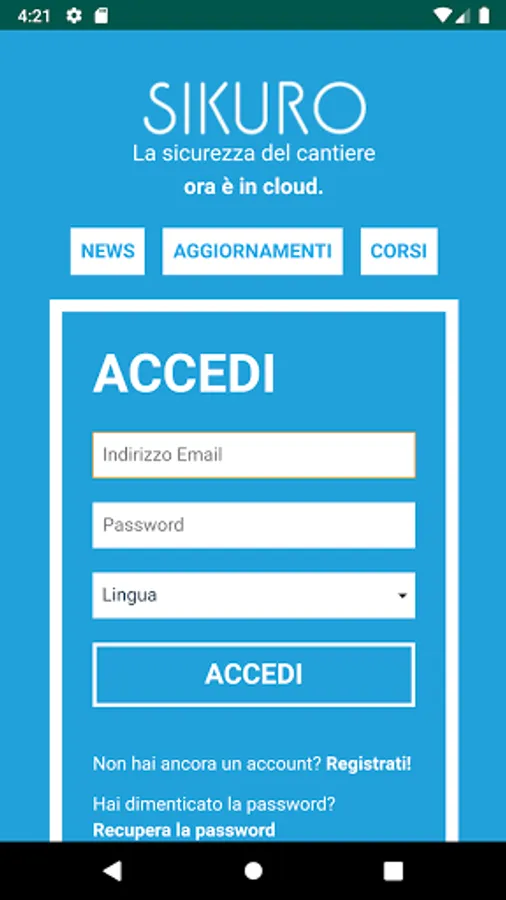 THE APPLICATION IS AVAILABLE AT THE LINK APP.SIKURO.IT, YOUR COMPANY'S SECURITY AT YOUR CLICK