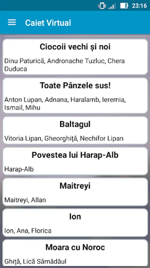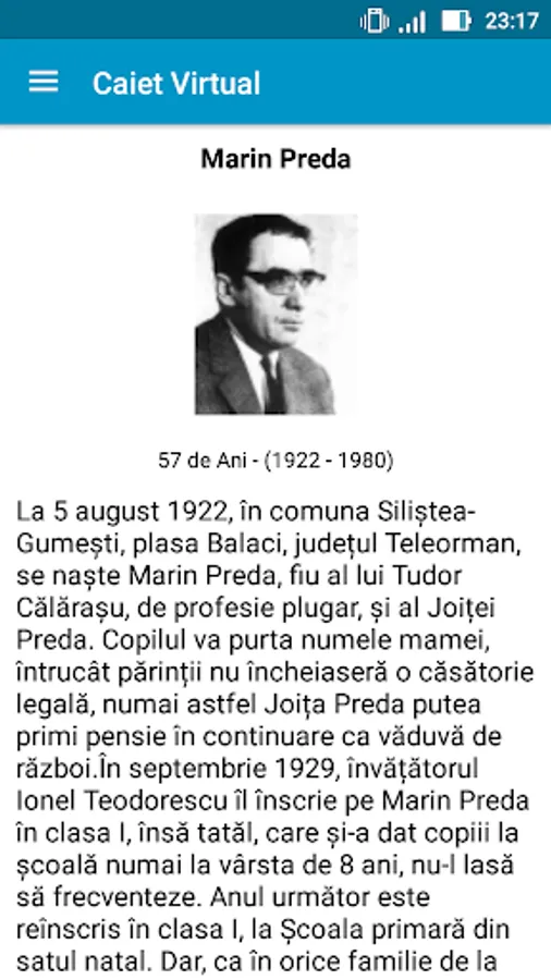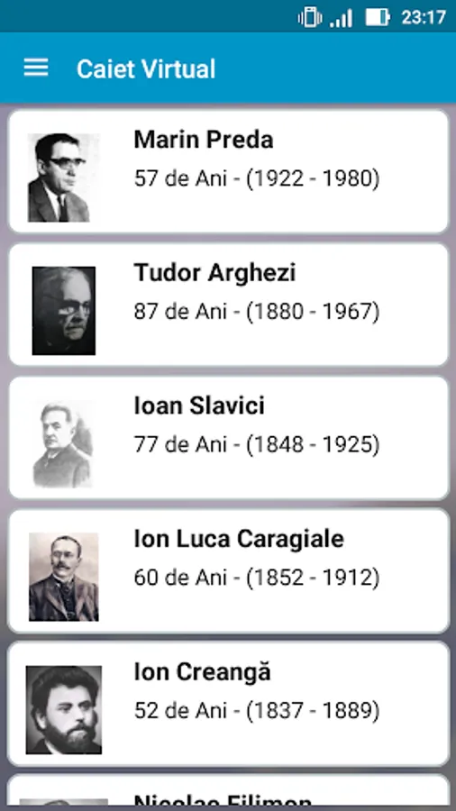 - Informații despre autorii care au scris operele a căror rezumate sunt în aplicație.