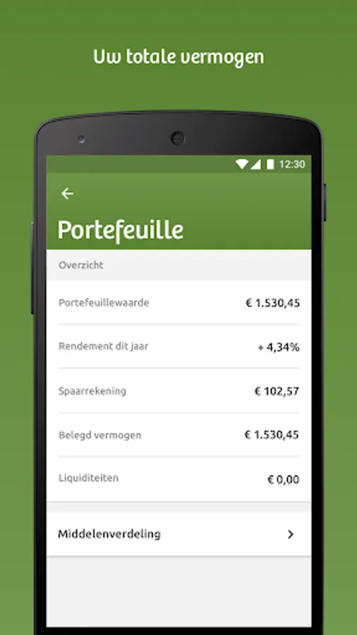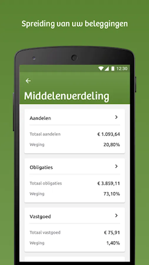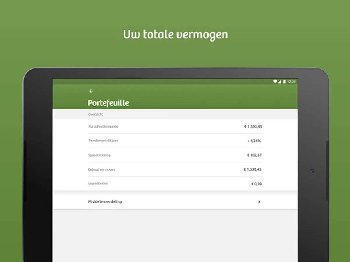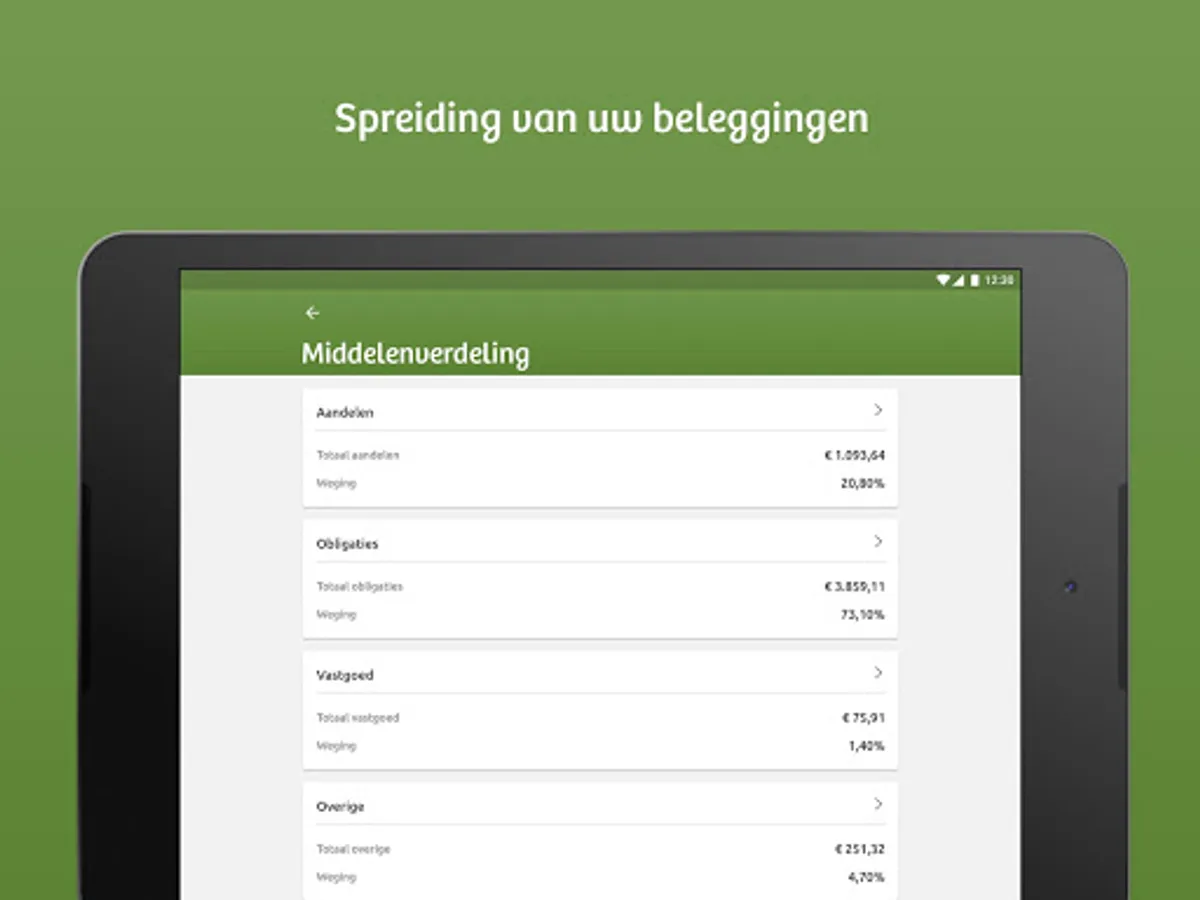 The dashboard on the CompliantBeheer App gives you at a glance the total value of your assets in any asset classes (equities, commodities, bonds, etc.) you invest, how your assets are distributed among the various regions and your return.