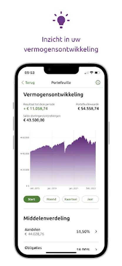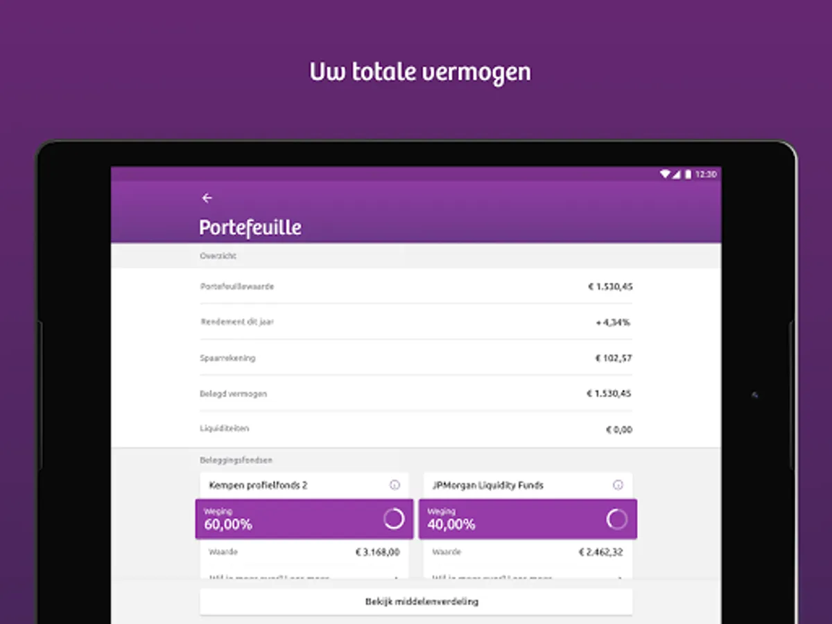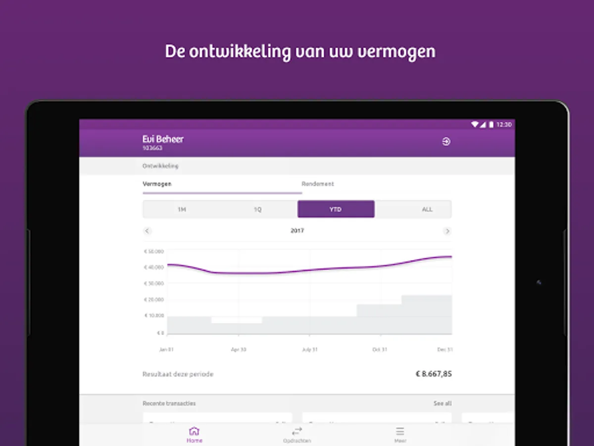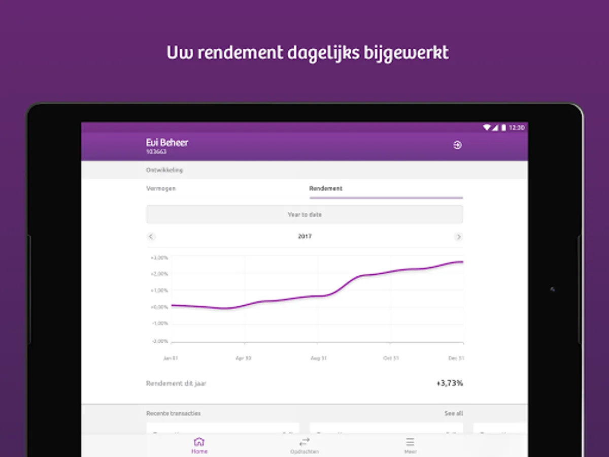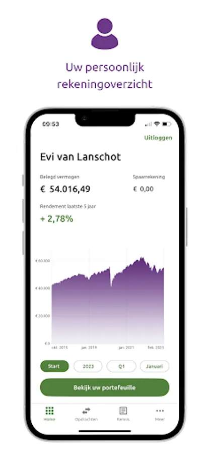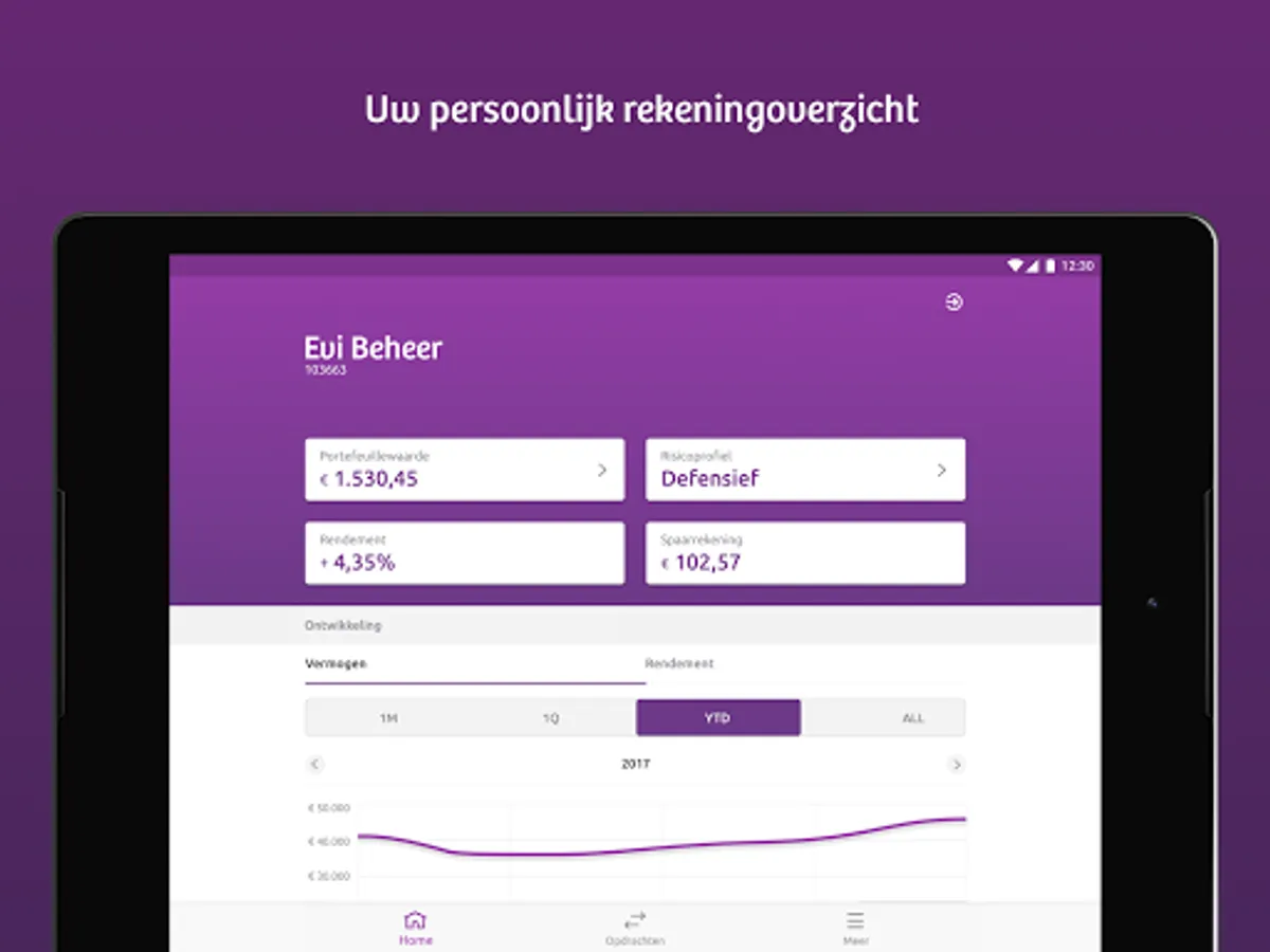 • 24/7 insight into all your investment accounts with Evi Beheer, Evi Go, Target investing, Evi Pensioen and Evi4Kids