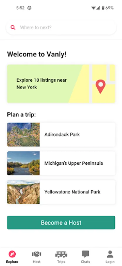 Vanly allows van and RV travelers across the US to find and rent safe overnight parking from private parties.