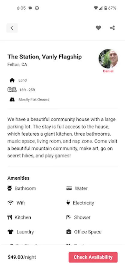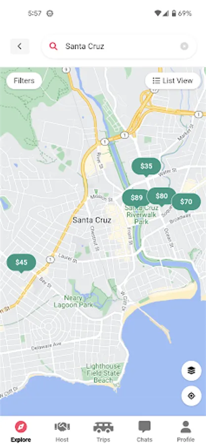 You can choose from hundreds of private listings in the United States. You can filter by anything from bathroom access to working station access and pet play space. Once you found your favorite driveway, you can book it within the app with just a couple of taps. You can then communicate with the host within the app and get push notifications when you get a new message or there's an update to your booking.