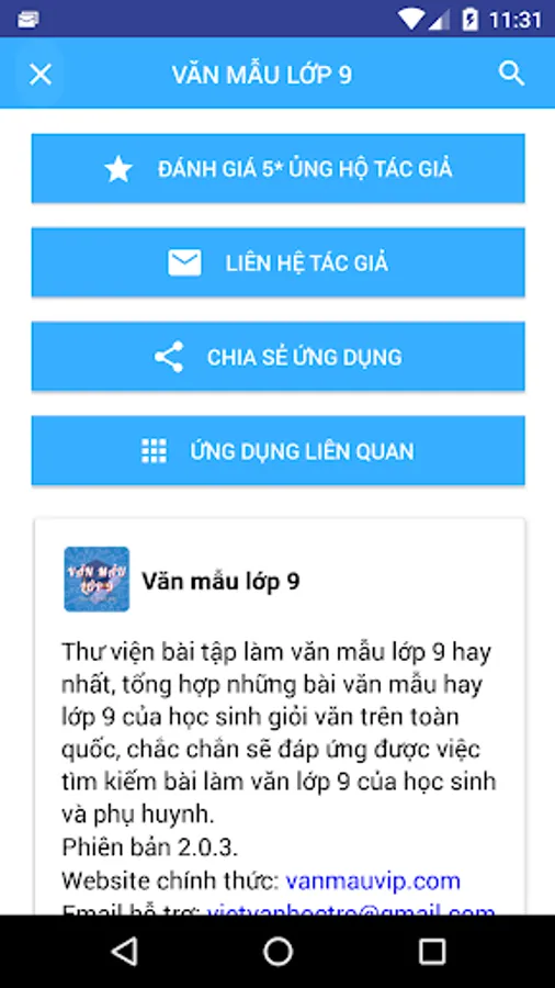 ★ Amazing interactive sharing: You can copy sample articles to many other applications, share sample articles on Facebook, Zalo, Messages ..., send articles to friends and relatives, or even send Make your essay for the editorial via email easy.