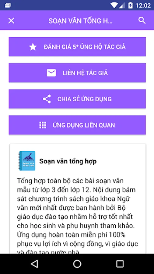 Synthesize all sample compositions from grades 3 to 12. The content adheres to the latest Literature textbook program issued by the Ministry of Education and Training to best support students and parents. reference. 100% free application for the benefit of the community, education and training in the country.