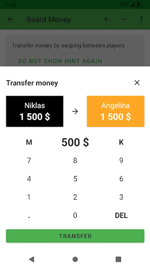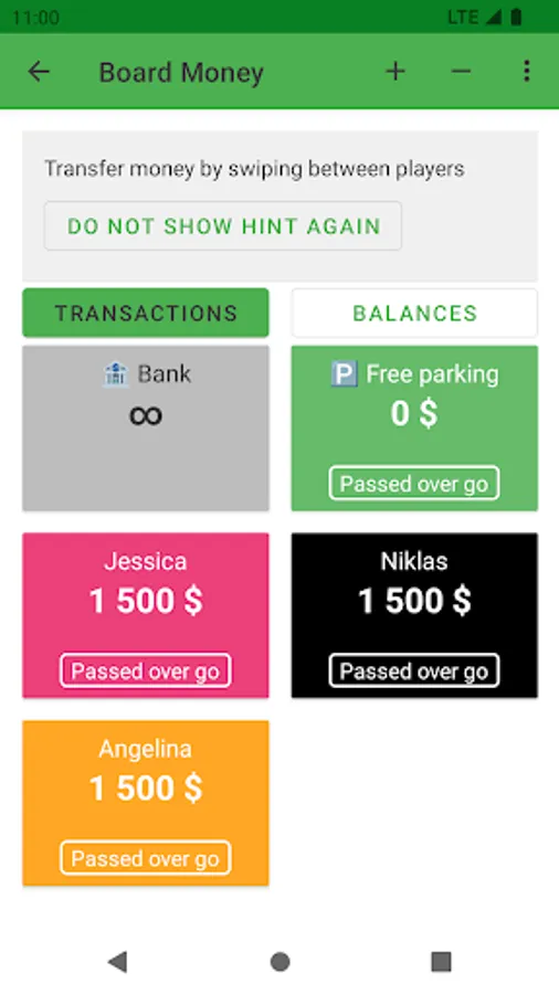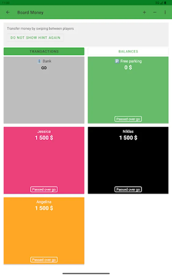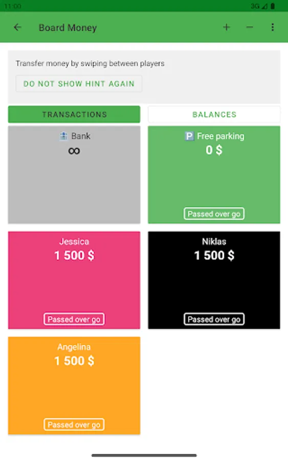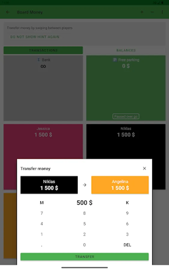 The Board Money Calculator can be opened by swiping between players.