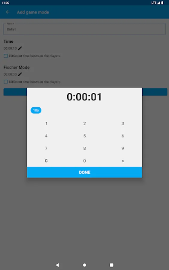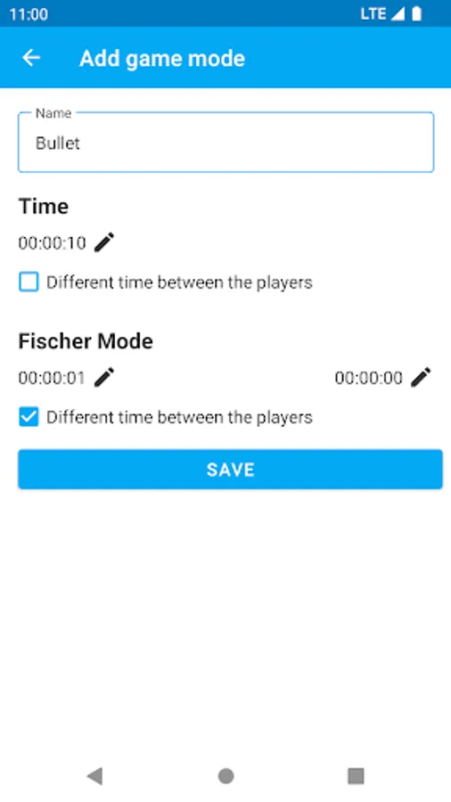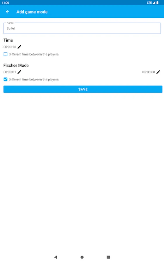 You can add your own time modes. The Chess Clock can handle different times per player.