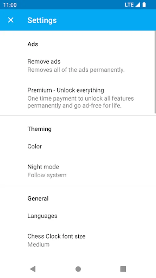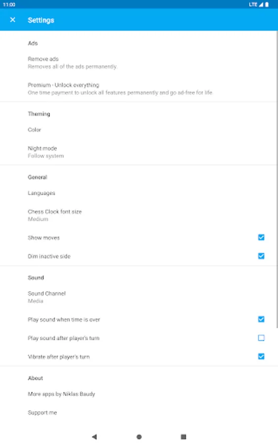 Additionally, the Chess Clock offers a way to customize the Chess Timer by using a custom chess watch theme. By default Chess Clock has a white and a dark theme.