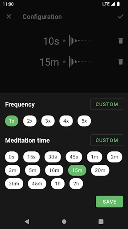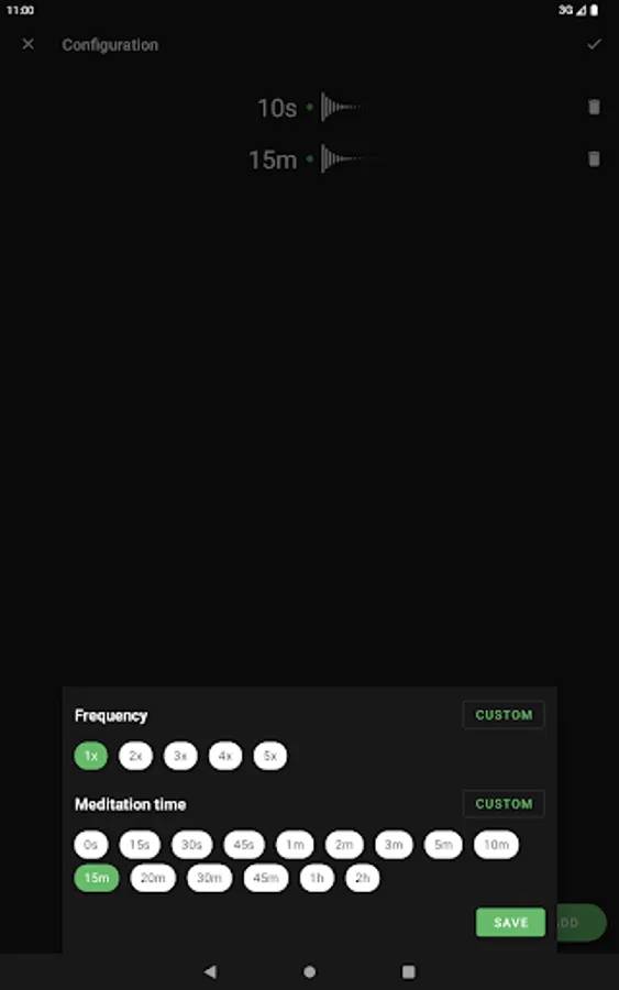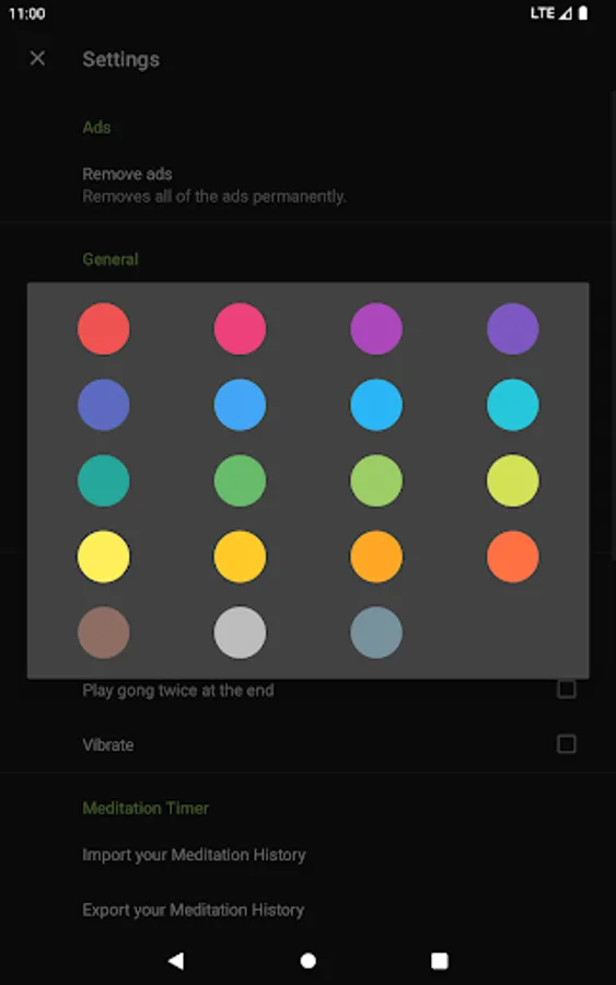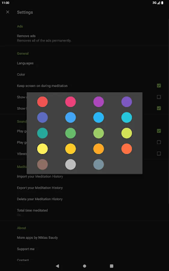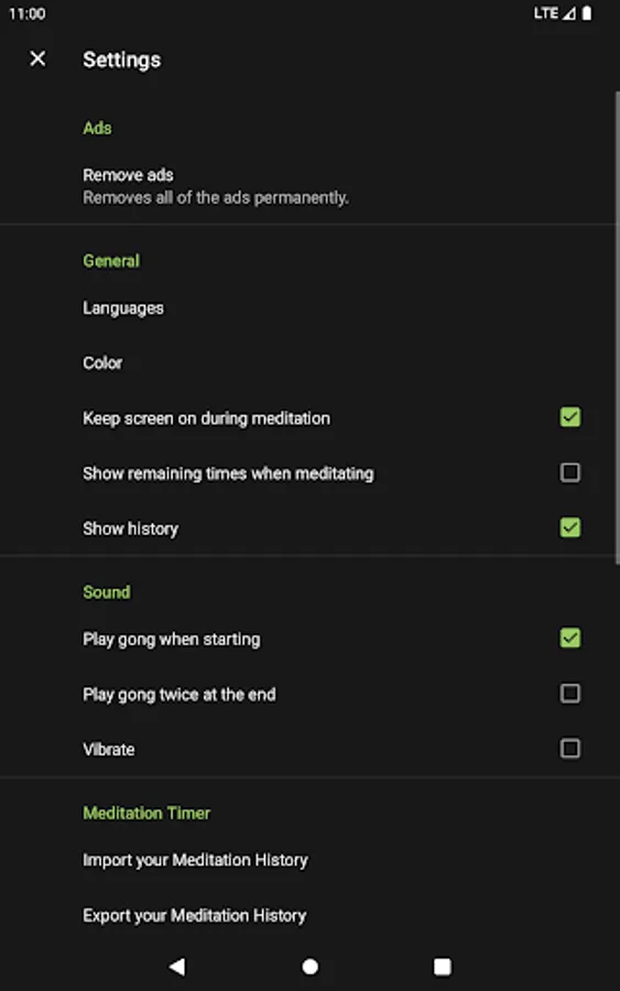 The Meditation Timer allows you to adjust the meditation time. Also, the Meditation Timer offers 8 different gongs.