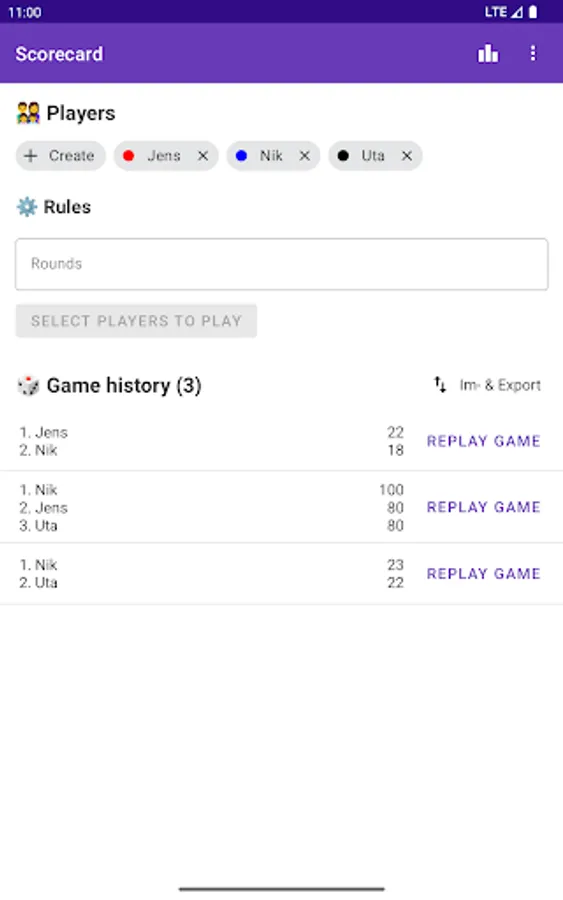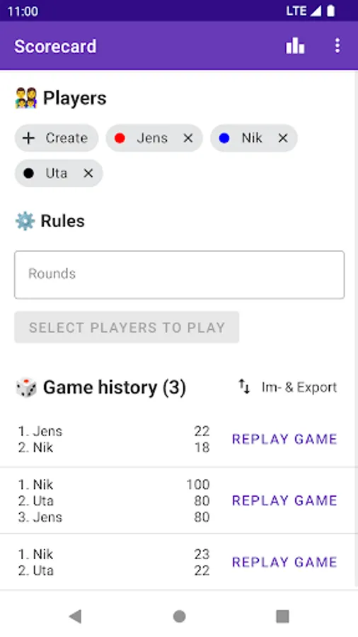 The score counter app remembers your history. Each score card can be revisited. Score counting has never been easier.