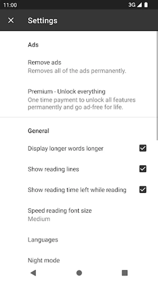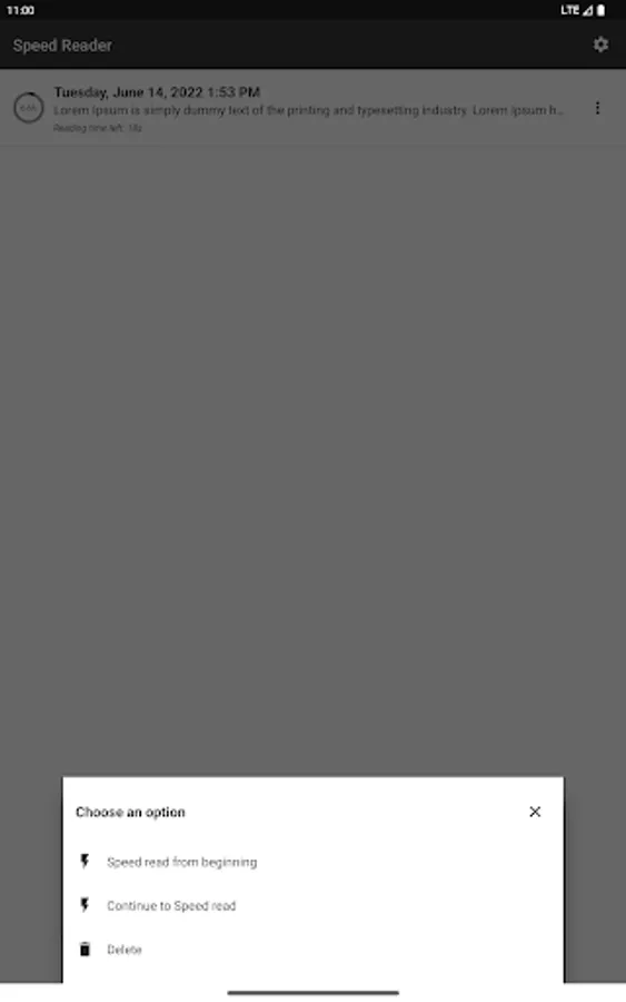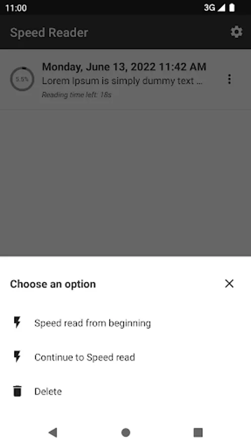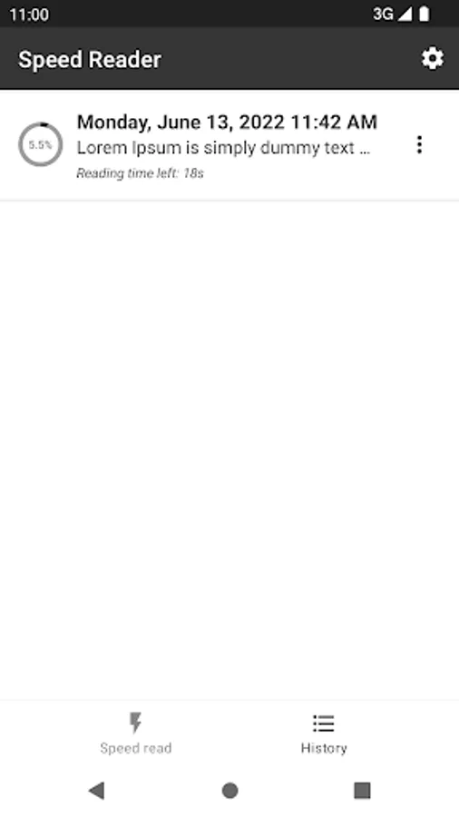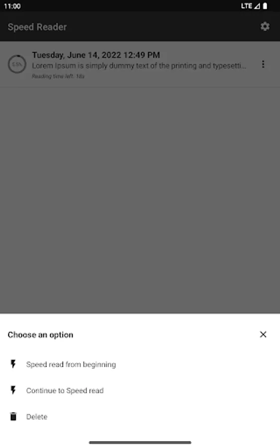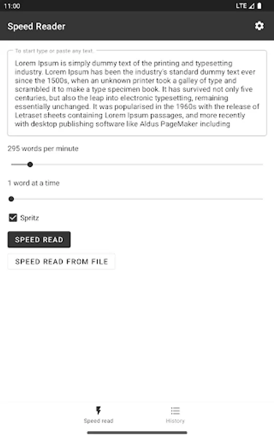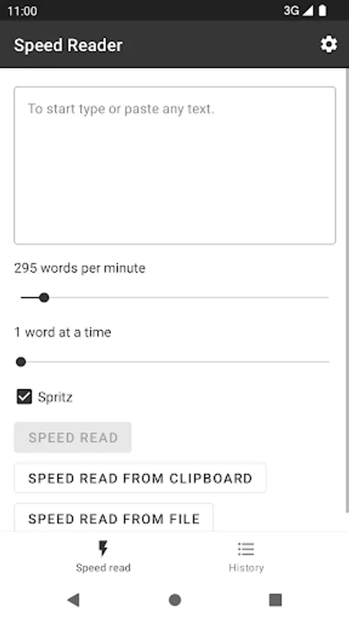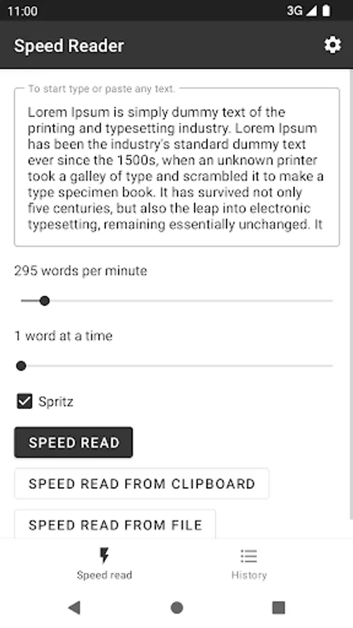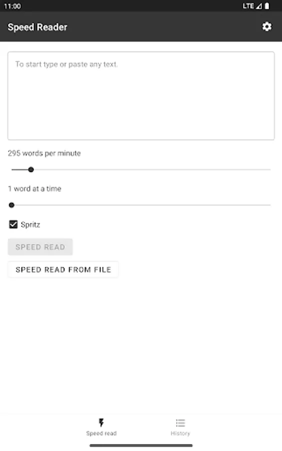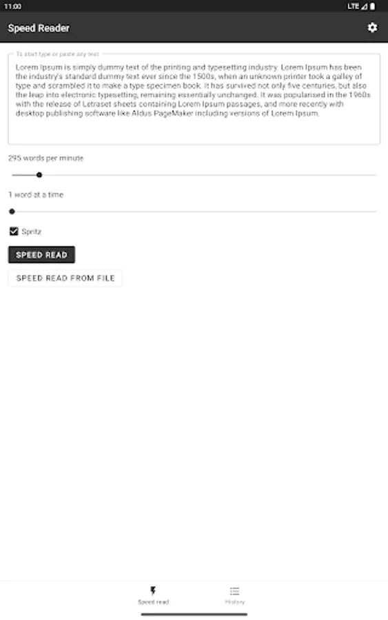 Speed Reading only shows one word at a time. You start with 300 words per minute. Using this Speed Reader App, you can easily speed read 750 words per minute. The more you are using Speed Reader, the faster you will be speed reading and increase your reading speed.