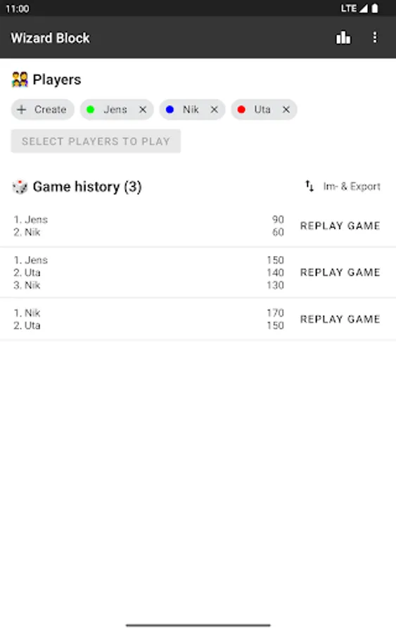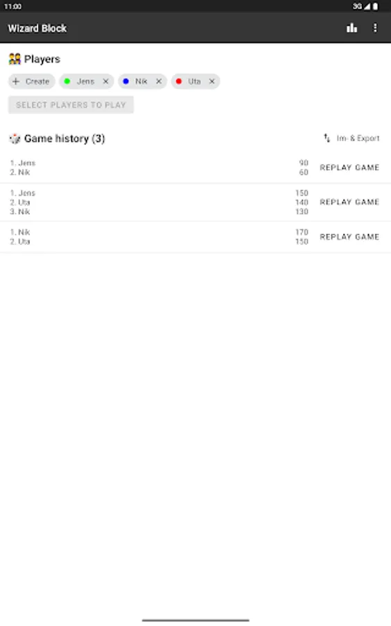Of each player Wizard Keeper will remember the history. Using Wizard Keeper you can review every game.