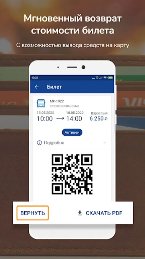 11. Return the ticket and instantly receive funds back to the e-wallet in your personal account or later withdraw to your bank card.