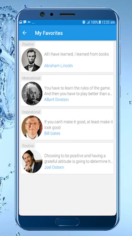 The best quotes of life in our app are also divided by authors. Find wisdom quotes by Abraham Lincoln, smart quotes by Albert Einstein or wise quotes about success from Steve Jobs. We have a large collection of amazing authors which is also frequently updated.